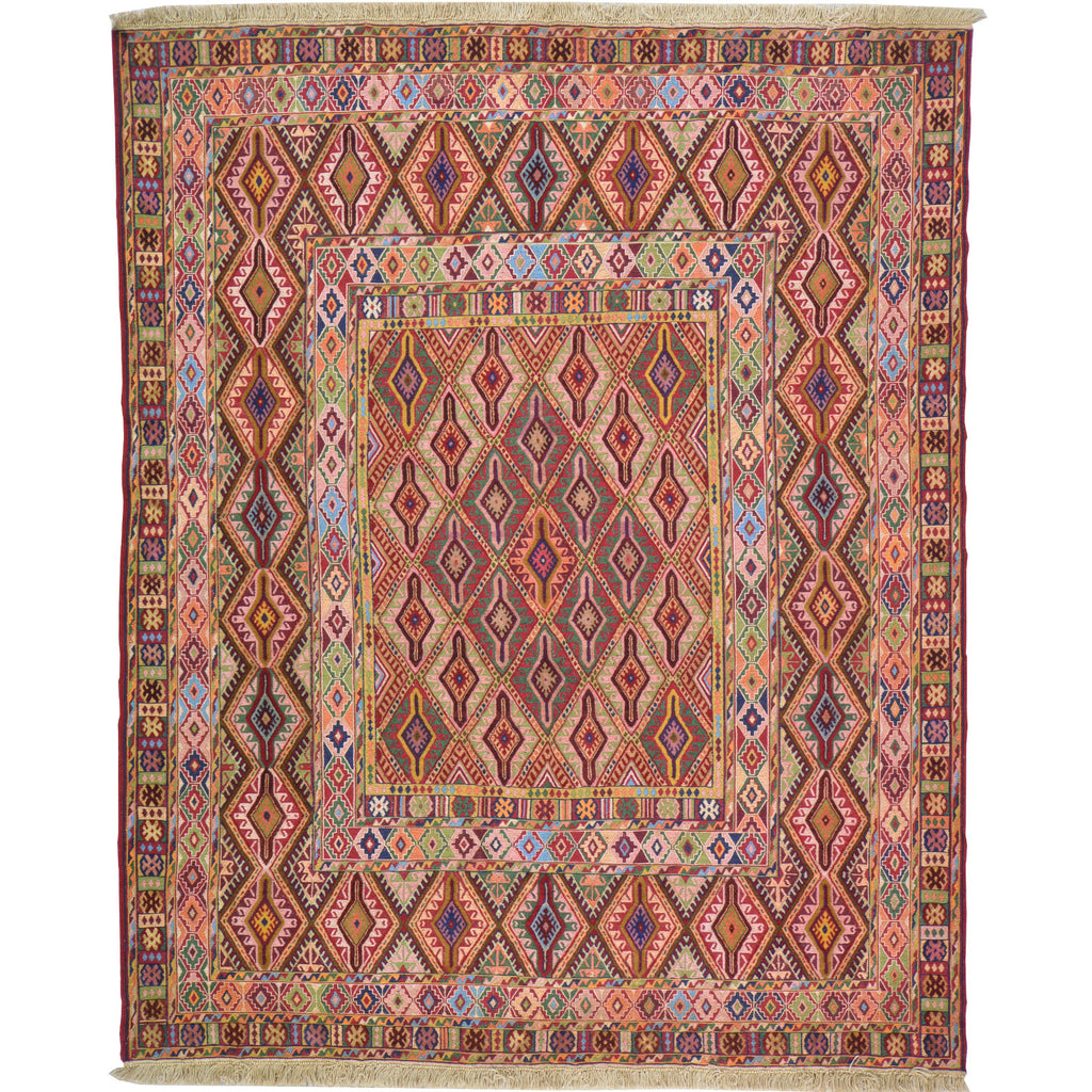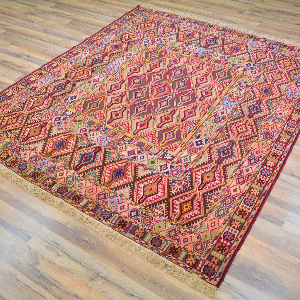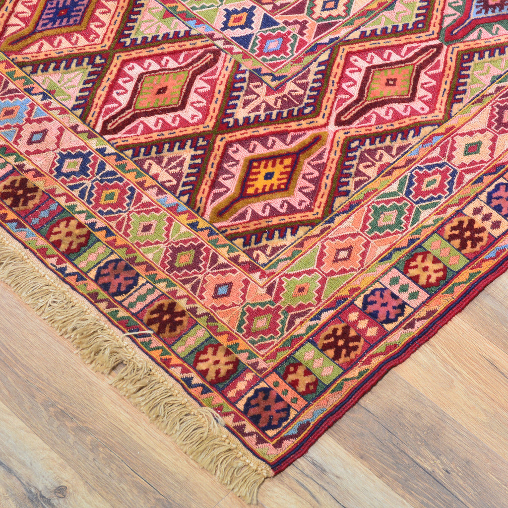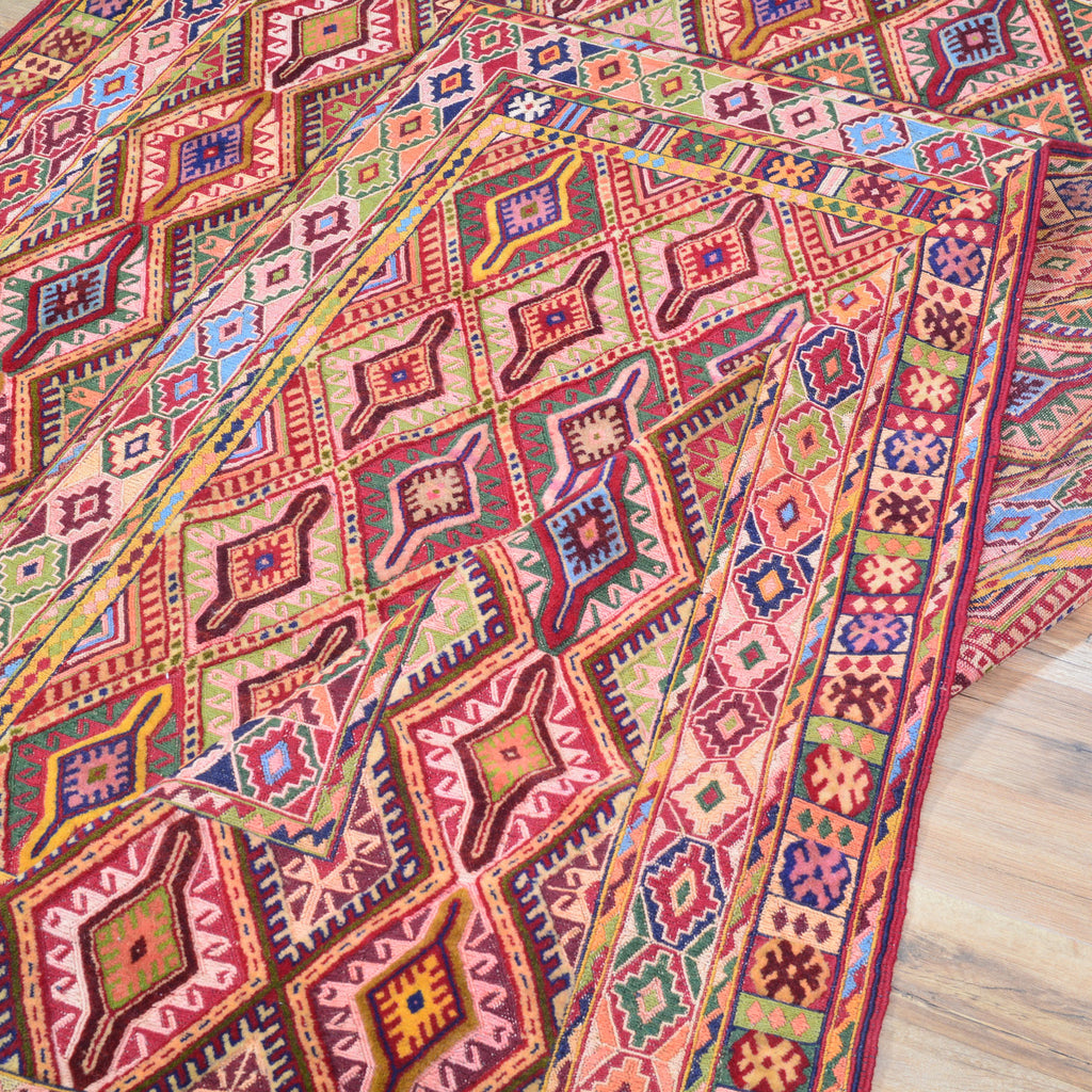 This technique combines both types of weaving, Hand-Knotted and the Soumak technique. This type of weaving uses the Soumak weave to highlight areas of a piled Hand-Knotted rug, creating a unique sturdy texture.