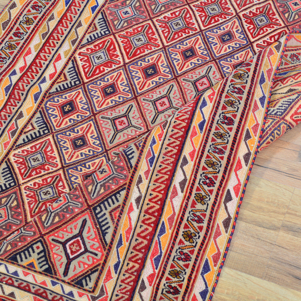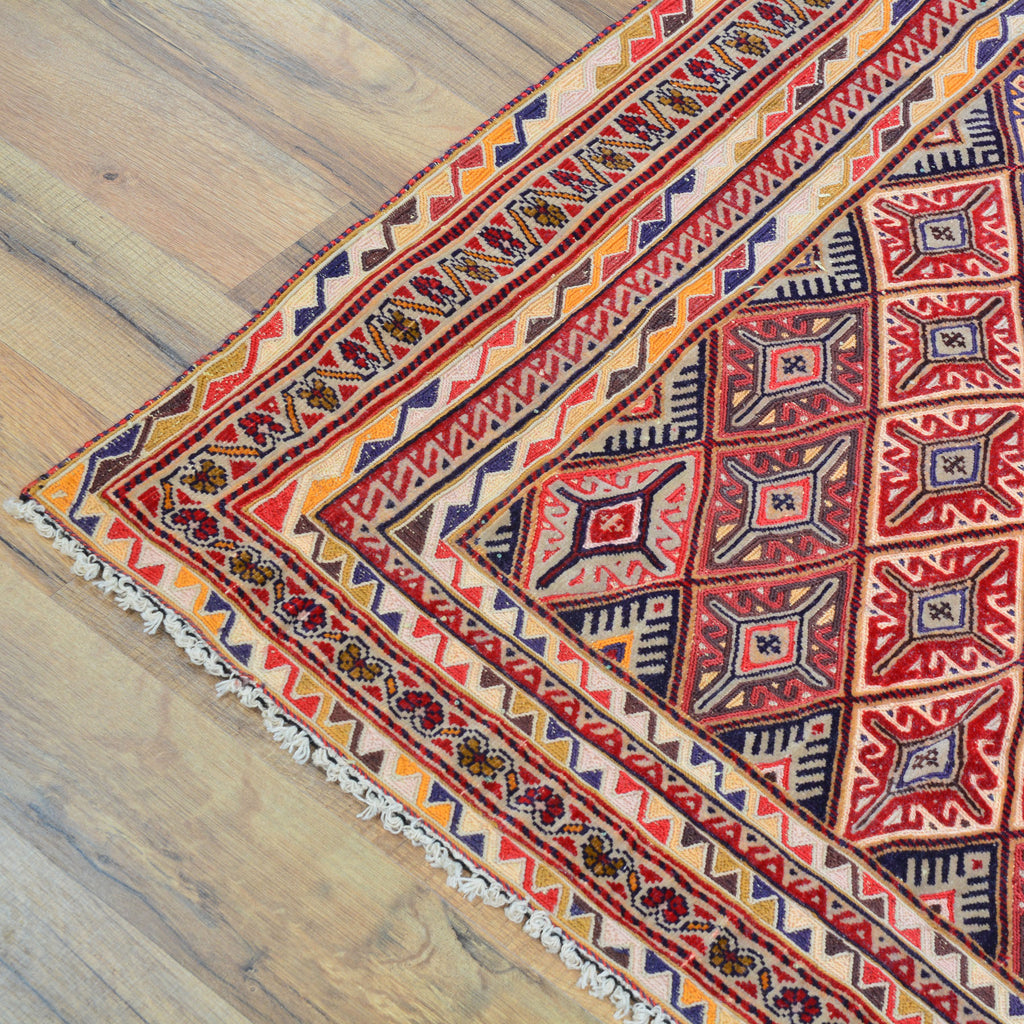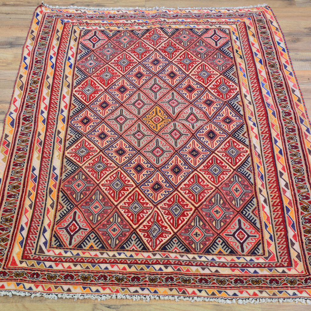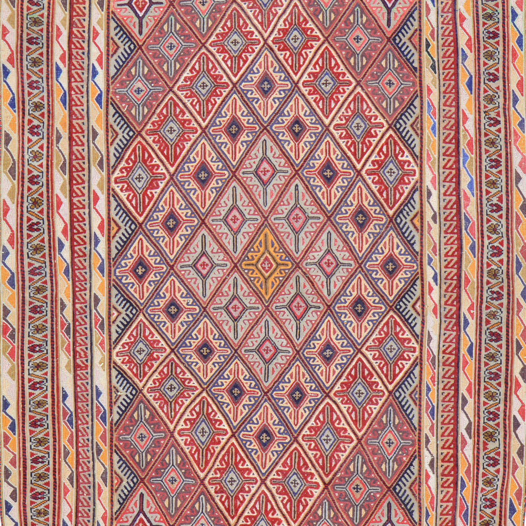 To avoid long vertical slits that can make a Hand-Woven rug not durable, most Kilim rugs are created with diagonal or horizontal patterns. This is why it's very common to see octagons, diamonds and triangular shapes in a Flatweave rug.
