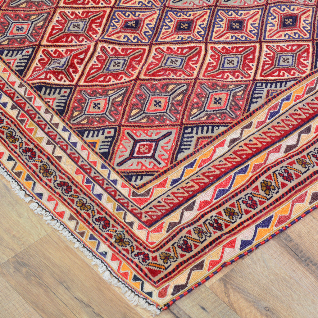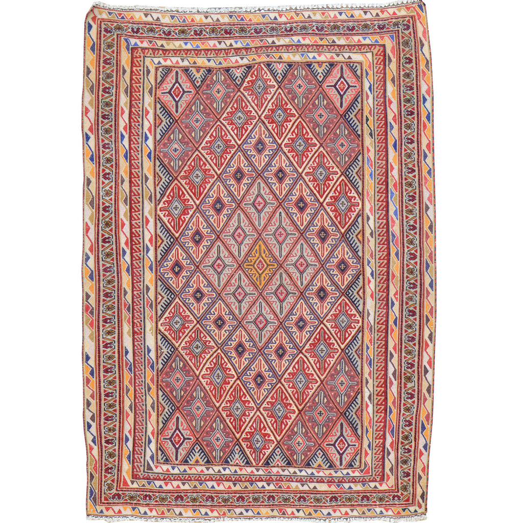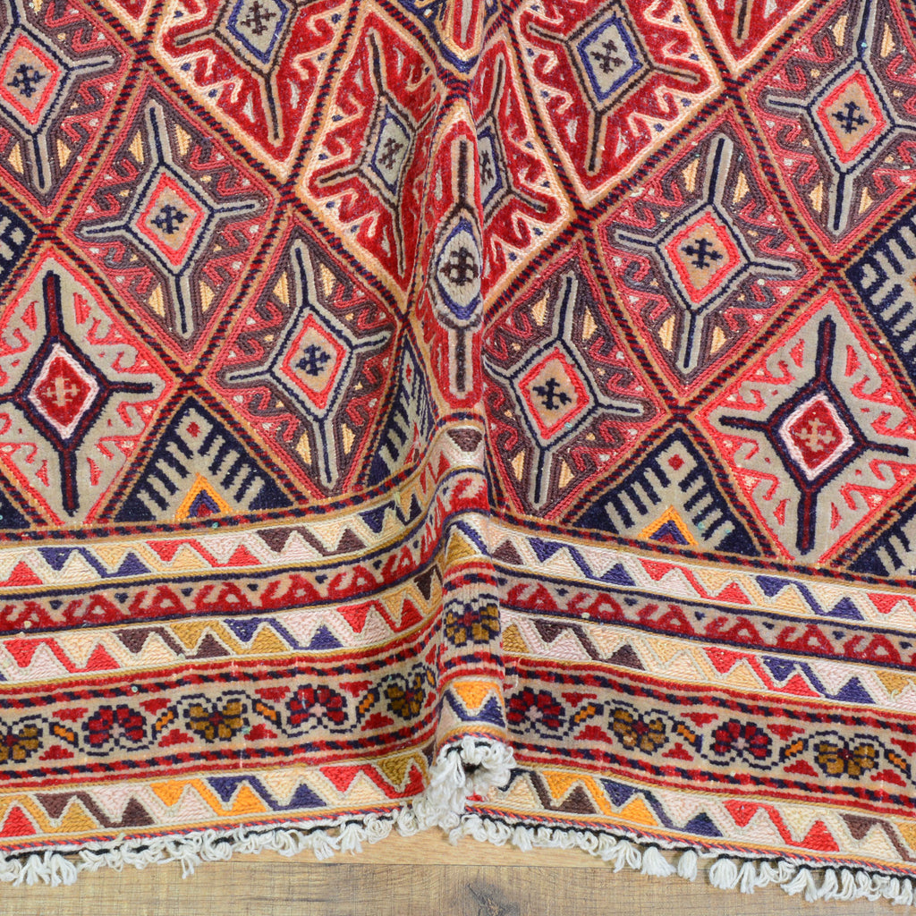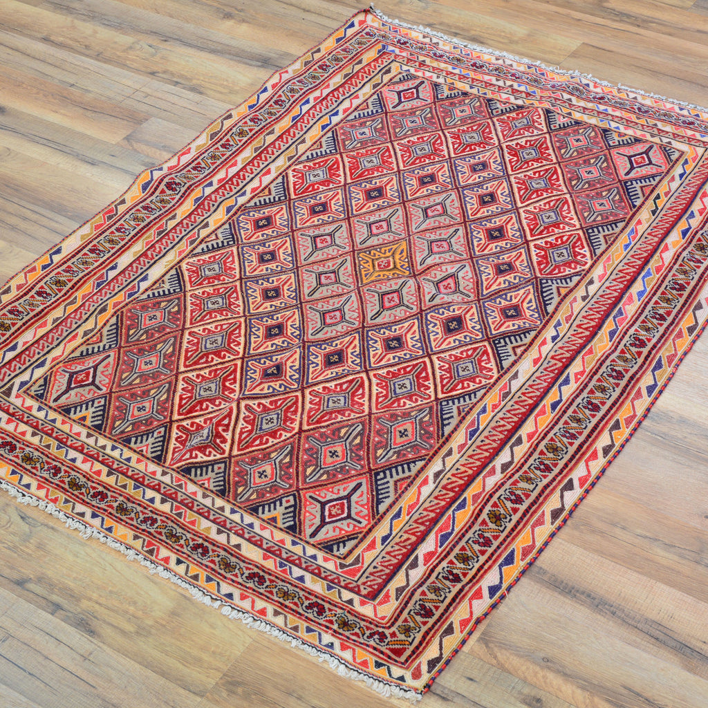 To avoid long vertical slits that can make a Hand-Woven rug not durable, most Kilim rugs are created with diagonal or horizontal patterns. This is why it's very common to see octagons, diamonds and triangular shapes in a Flatweave rug.