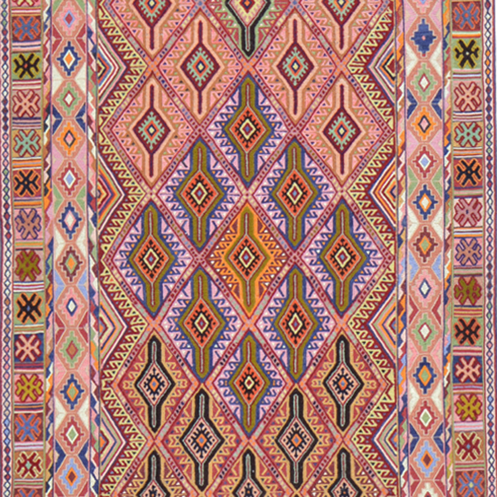 To avoid long vertical slits that can make a Hand-Woven rug not durable, most Kilim rugs are created with diagonal or horizontal patterns. This is why it's very common to see octagons, diamonds and triangular shapes in a Flatweave rug.