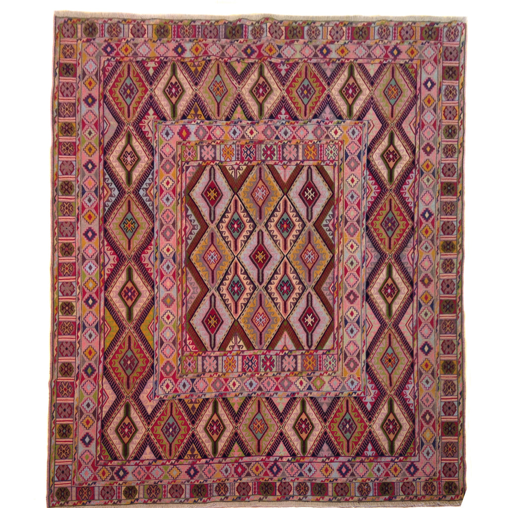 To avoid long vertical slits that can make a Hand-Woven rug not durable, most Kilim rugs are created with diagonal or horizontal patterns. This is why it's very common to see octagons, diamonds and triangular shapes in a Flatweave rug.