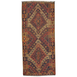 Hand-Woven Tribal Turkish Reversible Wool Oriental Kilim Rug (Size 3.5 X 8.4) Cwral-3285