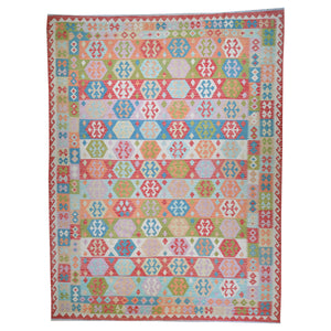 Hand-Woven Reversible Momana Kilim Colorful Handmade Wool Rug (Size 9.6 X 12.5) Cwral-6915