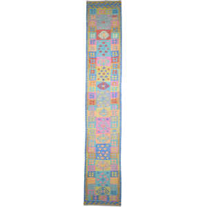 Hand-Woven Reversible Momana Kilim Handmade Wool Rug (Size 2.11 X 16.1) Cwral-10635