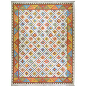 Hand-Woven Indian Durrie Kilim Reversible Wool Rug (Size 10.4 X 13.8) Brrsf-585
