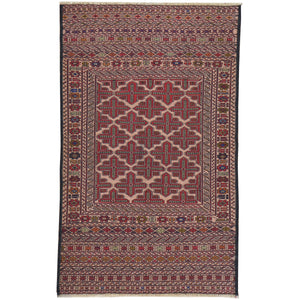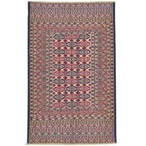Soumak Fine Tribal Traditional Handmade Wool Afghan Rug (Size 3.11 X 6.2) Cwral-1086