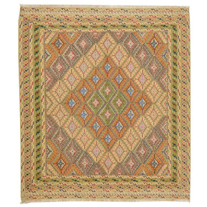 Hand-Woven Oriental Stripes Design Sumak Kilim Handmade Wool (Size 8.3 X 9.11) Cwrsf-6033