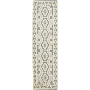 Hand-Woven Flatweave Geometric Design Kilim Handmade Wool (Size 2.7 X 9.9) Cwral-9570