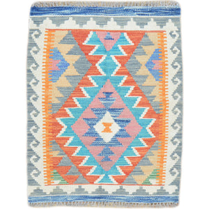 Hand-Woven Southwestern Design Kilim Handmade Wool Rug (Size 2.0 X 2.11) Cwral-9456