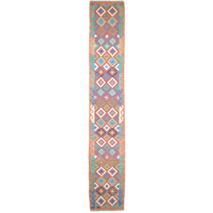 Hand-Woven Flatweave Geometric Design Kilim Handmade 100% Wool (Size 2.7 X 13.2) Cwral-9561