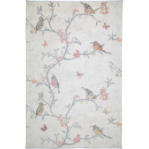 Hand-Knotted Modern Ivory Contemporary Design Wool Rug (Size 5.0 X 7.11) Cwral-11373