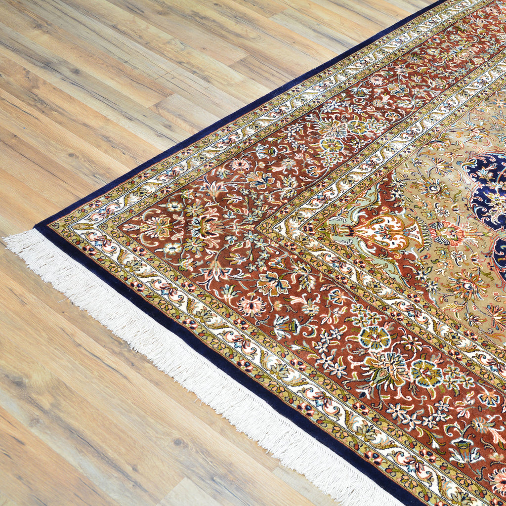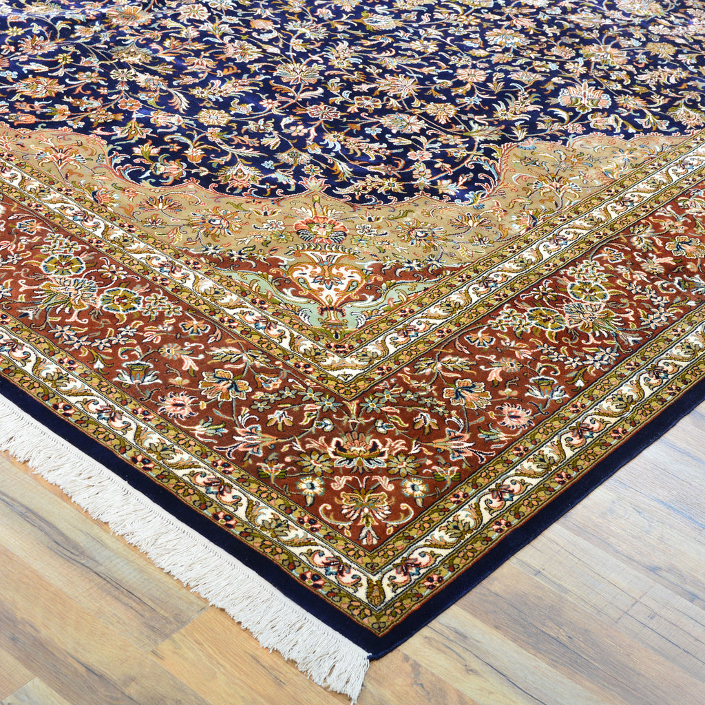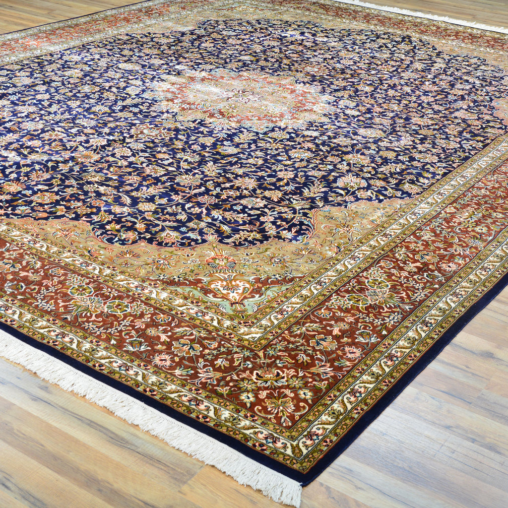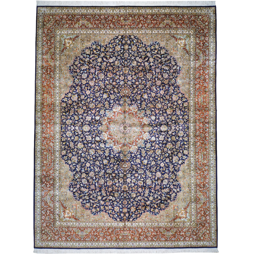 Hand-Knotted Traditional Design Kashmiri Silk Handmade Rug (Size 9.2 X 11.10) Cwral-11667