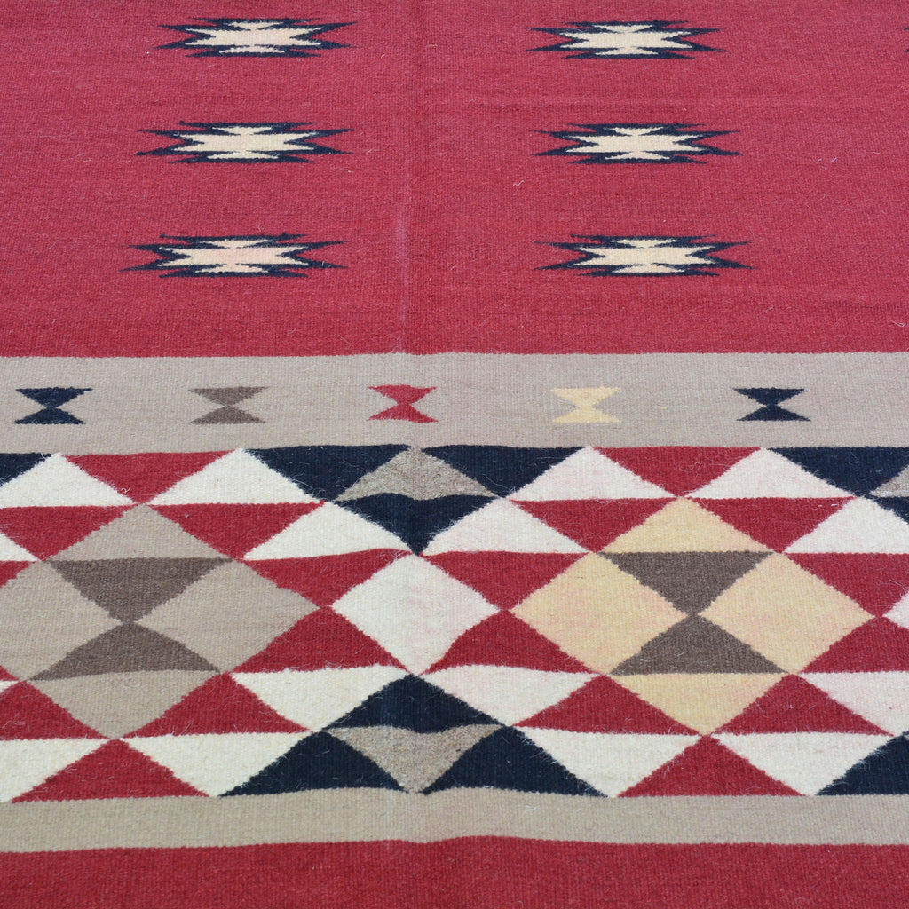 To avoid long vertical slits that can make a Hand-Woven rug not durable, most Kilim rugs are created with diagonal or horizontal patterns. This is why it's very common to see octagons, diamonds and triangular shapes in a Flatweave rug.