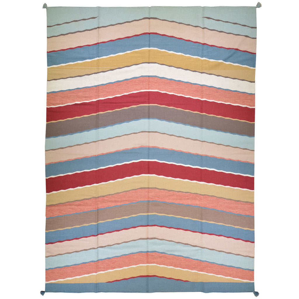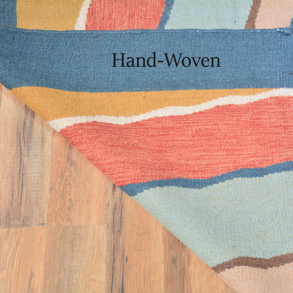 A Hand-Woven rug can also be called a Kilim, or Flatweave and it uses what is called a "Slit-weave" technique. The Slit-weave technique uses only a warp yarn as the foundation, allowing the weaver to build the rug by interlacing the yarn, as the weft.