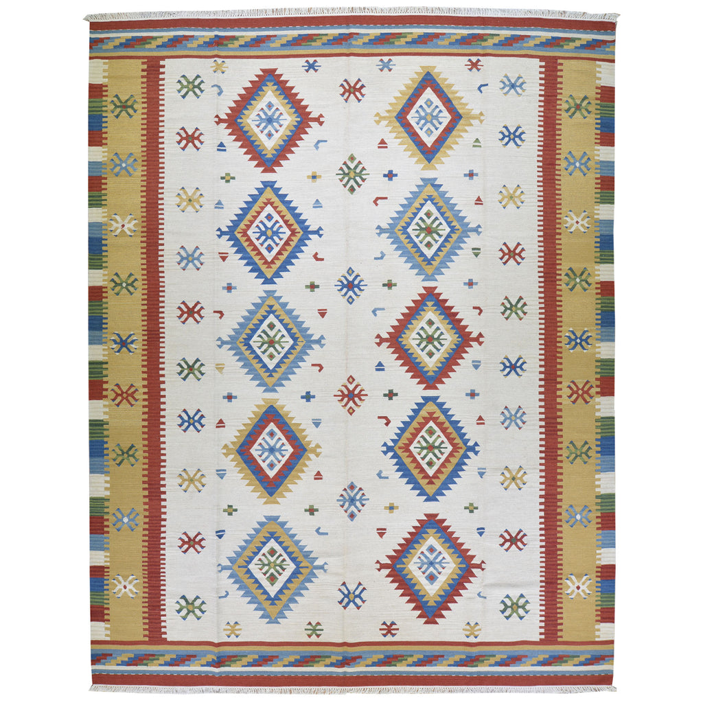 To avoid long vertical slits that can make a Hand-Woven rug not durable, most Kilim rugs are created with diagonal or horizontal patterns. This is why it's very common to see octagons, diamonds and triangular shapes in a Flatweave rug.