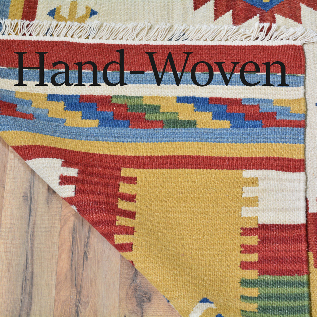 A Hand-Woven rug can also be called a Kilim, or Flatweave and it uses what is called a "Slit-weave" technique. The Slit-weave technique uses only a warp yarn as the foundation, allowing the weaver to build the rug by interlacing the yarn, as the weft.