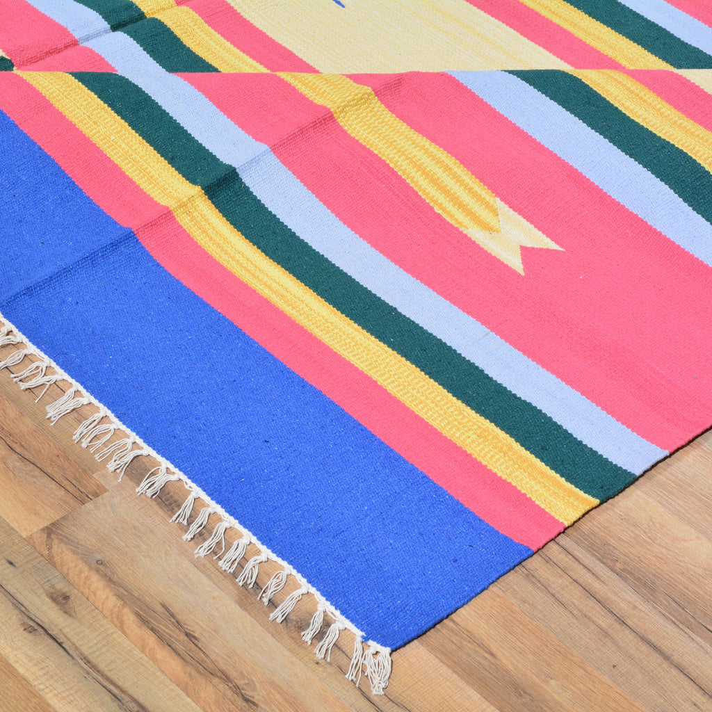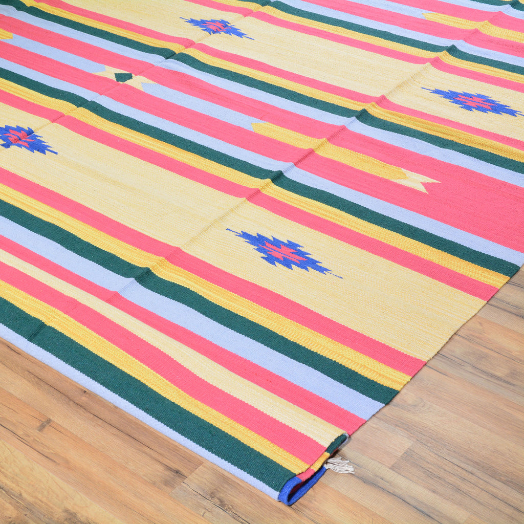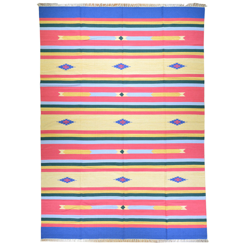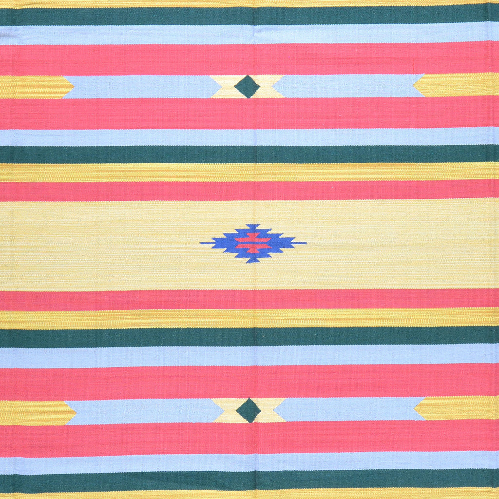 A Hand-Woven rug can also be called a Kilim, or Flatweave and it uses what is called a "Slit-weave" technique. The Slit-weave technique uses only a warp yarn as the foundation, allowing the weaver to build the rug by interlacing the yarn, as the weft.