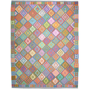 Hand-Woven Flat-Weave Southwestern Design Handmade Wool Rug (Size 8.10 X 12.8) Cwral-10953