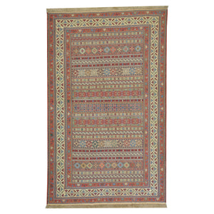 Fine Soumack Weave Tribal Design Handmade Wool Rug (Size 4.11 X 6.9) Cwral-9987