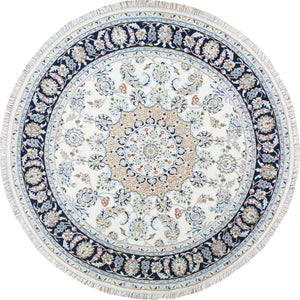 Hand-Knotted Oriental Wool & Silk Nain Design Handmade Round Rug (Size 6.0 X 6.0) Cwral-11148