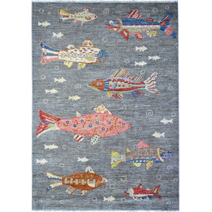 Hand-Knotted Peshawar Fish Design Handmade Wool Rug (Size 6.1 X 8.8) Cwral-11100