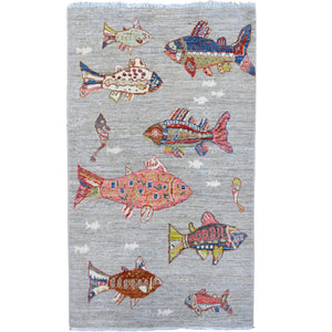 Hand-Knotted Peshawar Fish Design Handmade Wool Rug (Size 3.0 X 4.10) Cwral-11103