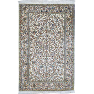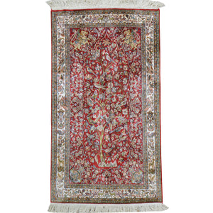 Hand-Knotted Kashmiri Silk Traditional Design Handmade Rug (Size 3.11 X 6.2) Cwral-11127