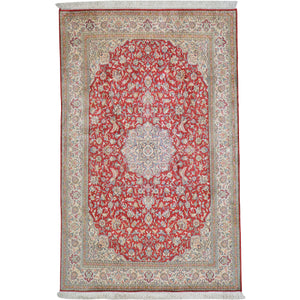 Hand-Knotted Kashmiri Silk Traditional Design Handmade Rug (Size 4.1 X 6.2) Cwral-11124