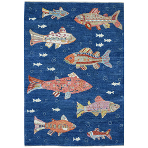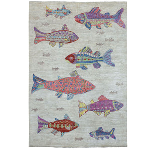 Hand-Knotted Peshawar Fish Design Handmade Wool Rug (Size 6.2 X 9.0) Cwral-11064