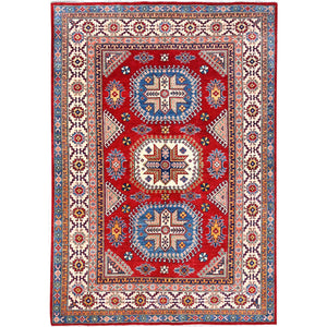 Hand-Knotted Geometric Kazak Design Wool Rug (Size 5.11 X 8.4) Cwral-11073