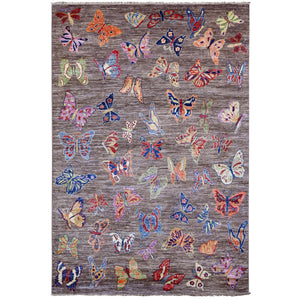 Hand-Knotted Paradise Butterfly Design Handmade Wool Rug (Size 6.0 X 8.9) Cwral-11085