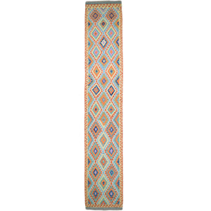 Hand-Woven Flatweave Geometric Design Kilim Handmade Wool (Size 2.10 X 15.10) Cwral-9558