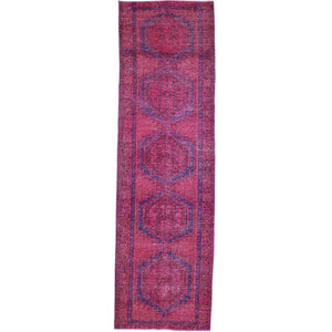 Hand-Knotted Tribal Overdyed Handmade Oriental 100% Wool Rug (Size 3.1 X 11.0) Brral-5532
