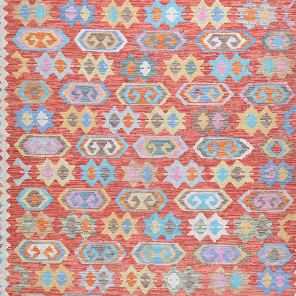 To avoid long vertical slits that can make a Hand-Woven rug not durable, most Kilim rugs are created with diagonal or horizontal patterns. This is why it's very common to see octagons, diamonds and triangular shapes in a Flatweave rug.