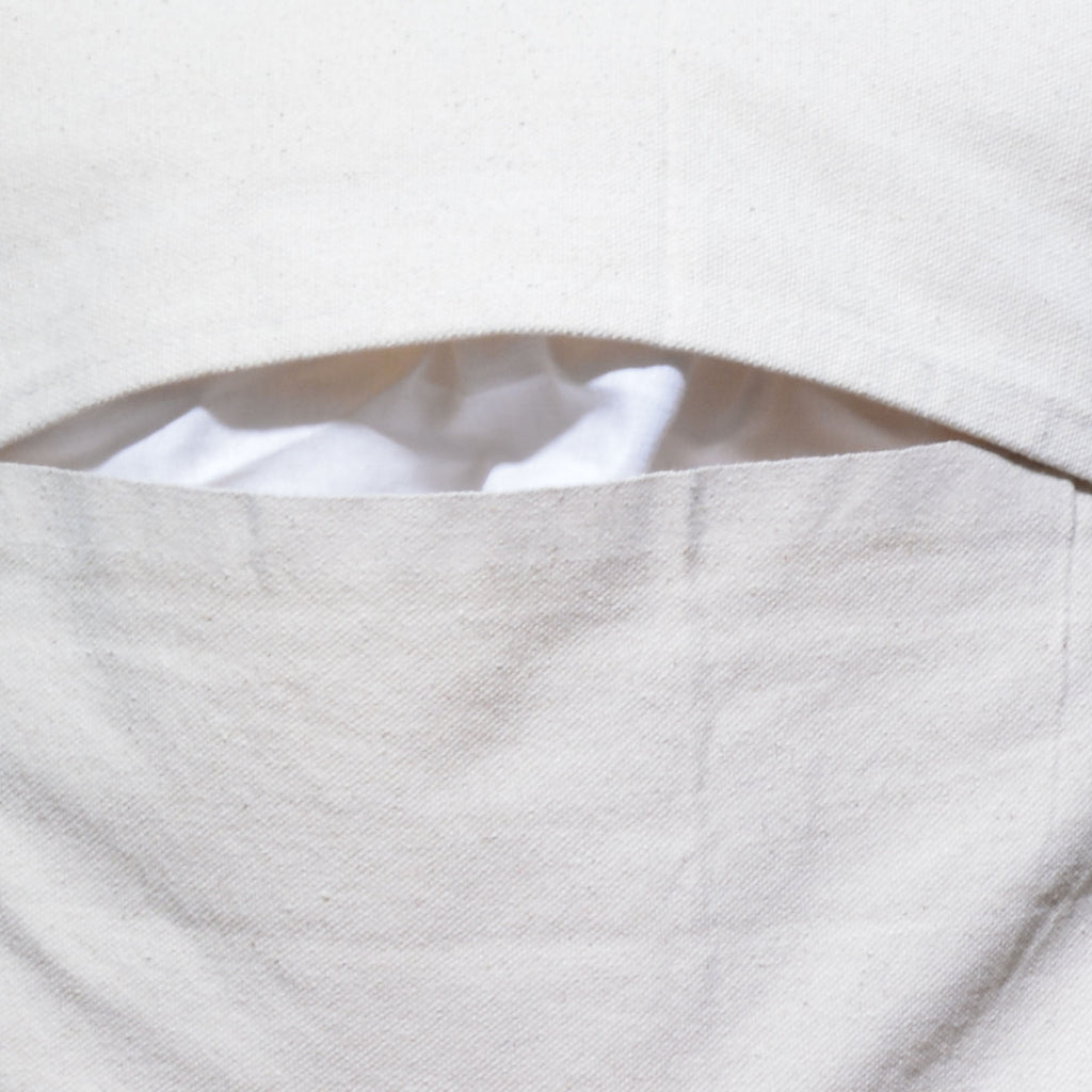 Our pillow covers are made of 100% fine Rayon in the front side and 100% cotton in the back. Dry Clean recommended.