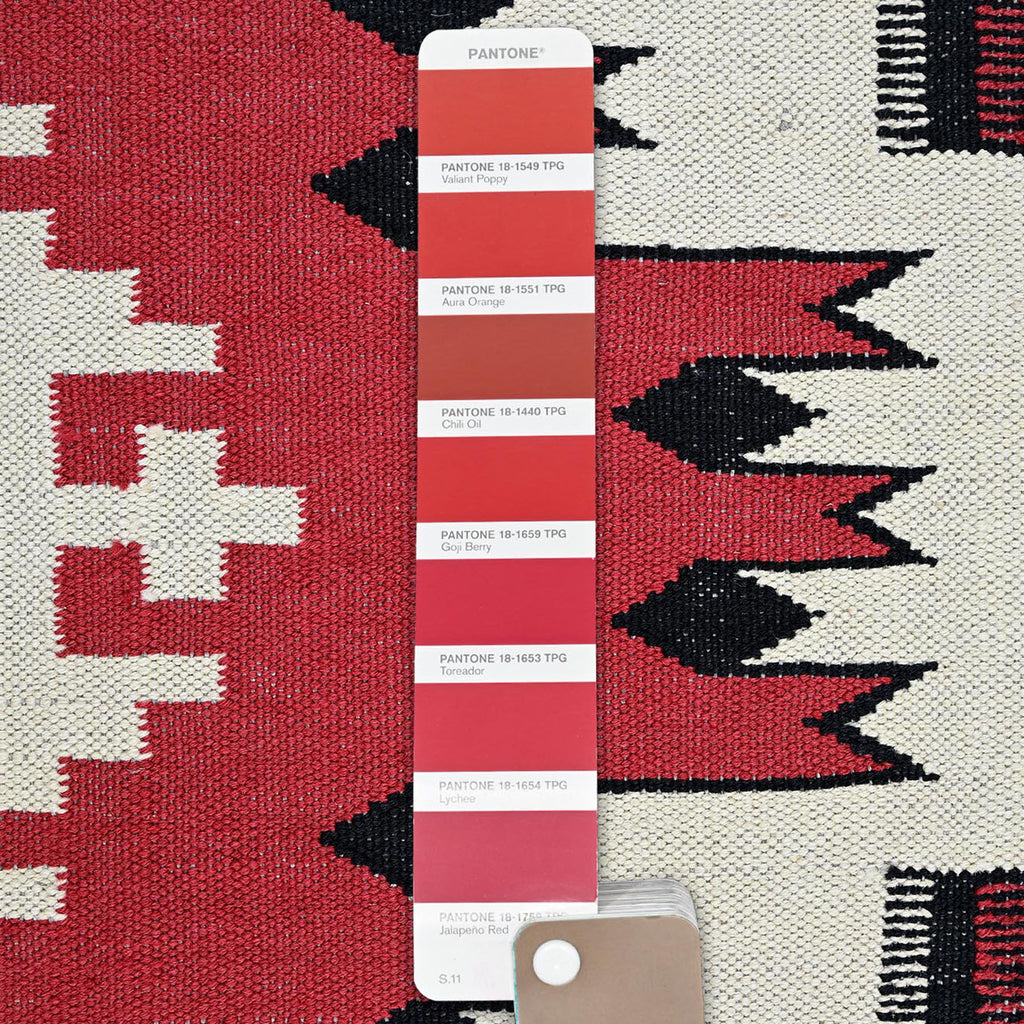 A Hand-Woven rug can also be called a Kilim, or Flatweave and it uses what is called a "Slit-weave" technique. The Slit-weave technique uses only a warp yarn as the foundation, allowing the weaver to build the rug by interlacing the yarn, as the weft.