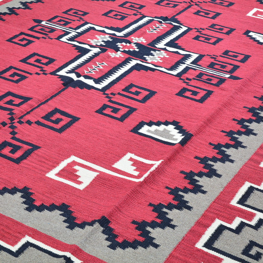 To avoid long vertical slits that can make a Hand-Woven rug not durable, most Kilim rugs are created with diagonal or horizontal patterns. This is why it's very common to see octagons, diamonds and triangular shapes in a Flatweave rug.