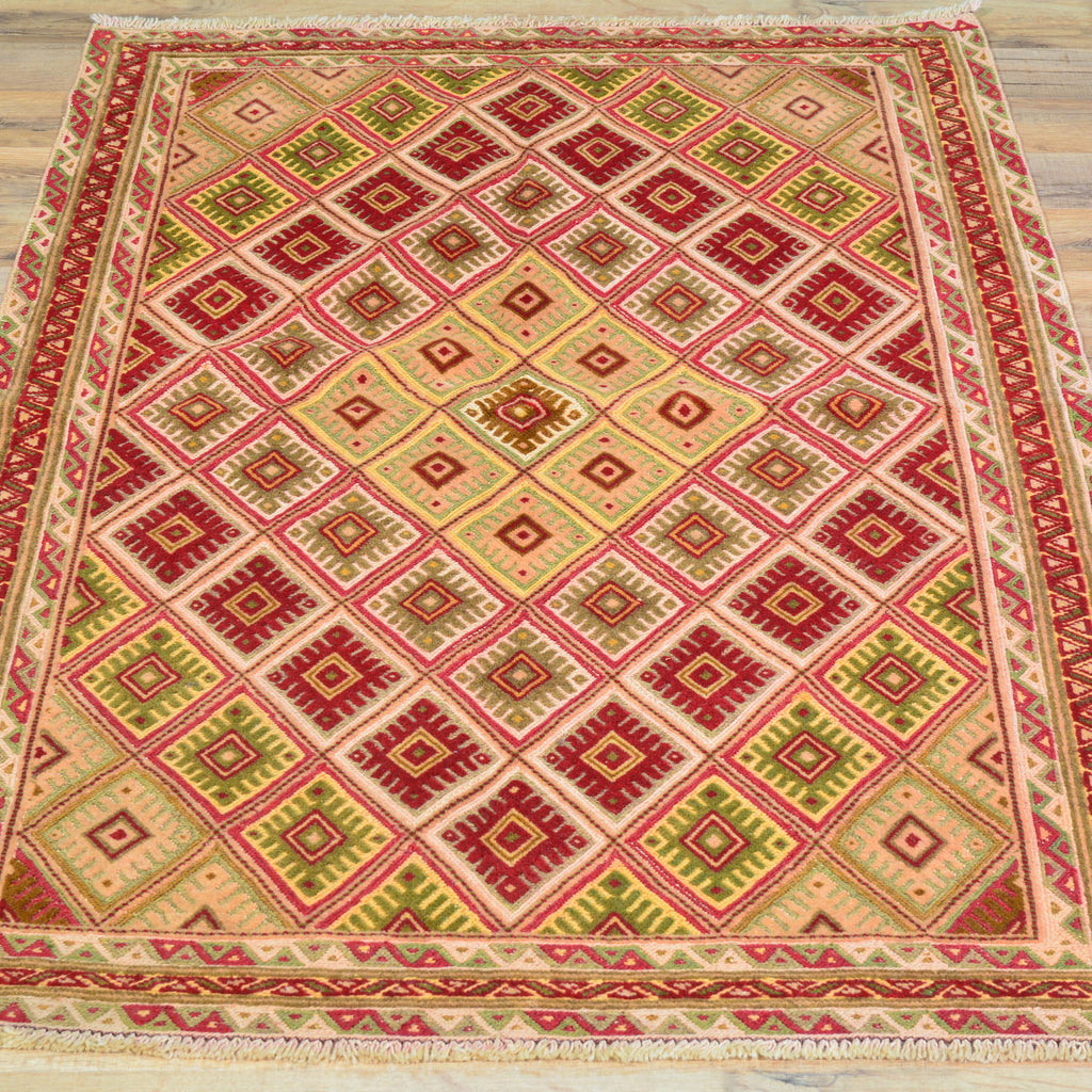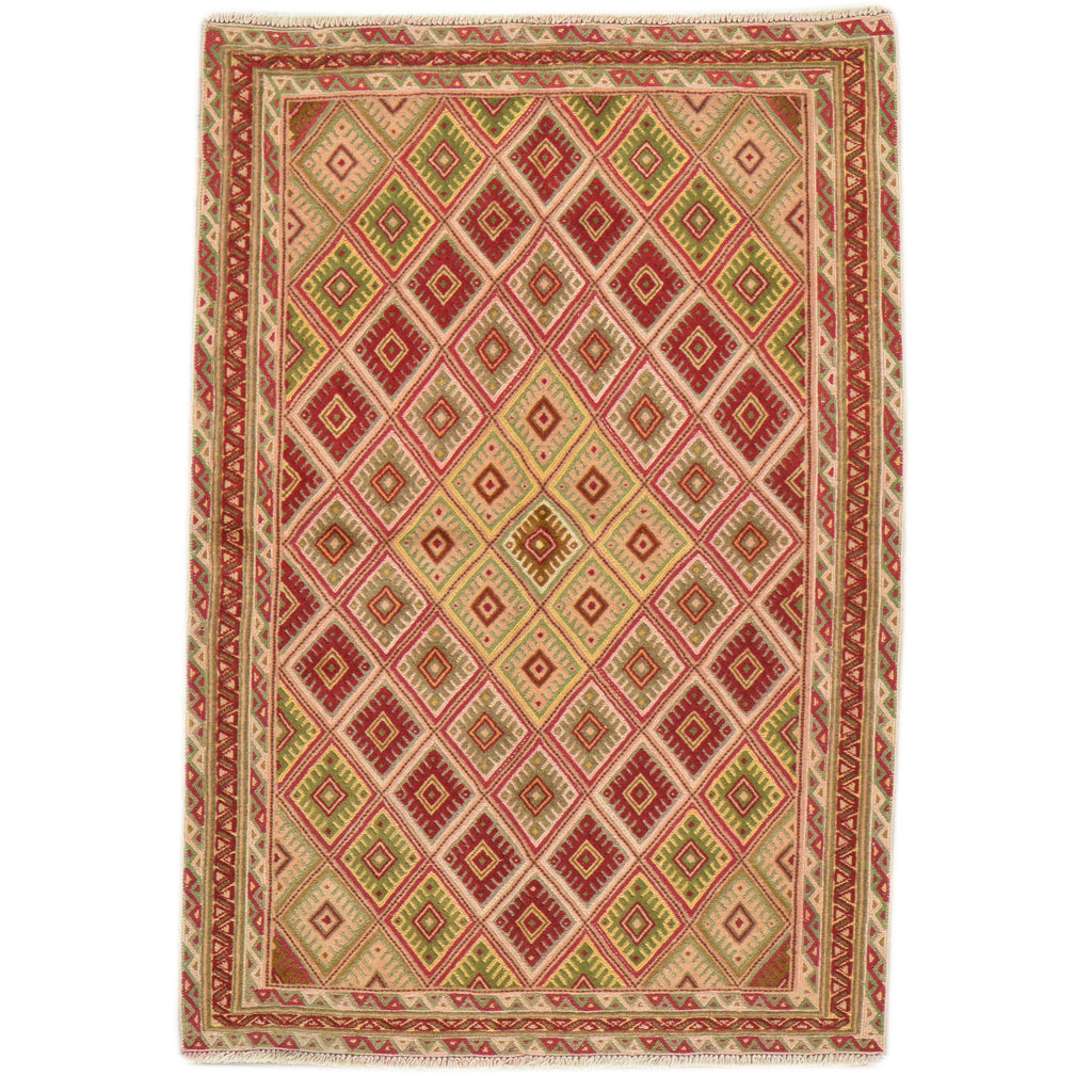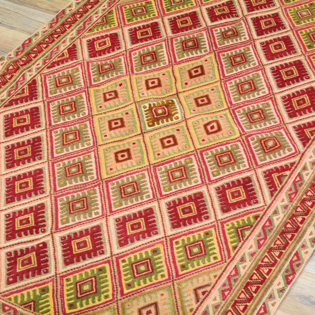 To avoid long vertical slits that can make a Hand-Woven rug not durable, most Kilim rugs are created with diagonal or horizontal patterns. This is why it's very common to see octagons, diamonds and triangular shapes in a Flatweave rug.