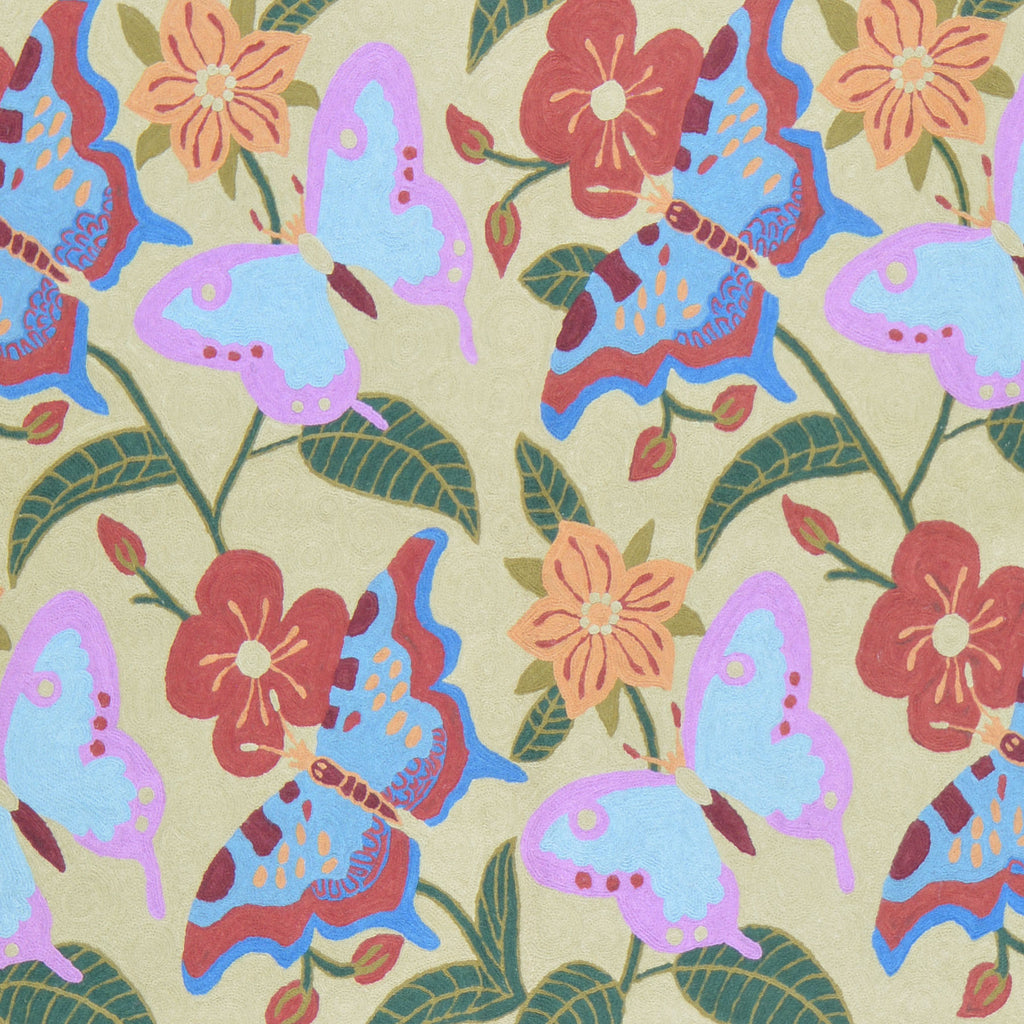 Chain stitching is an embroidery technique that is stitched into a finished woven fabric. The ability to incorporate designs one stitch at a time rather than through a weaving process can create strikingly beautiful patterns. This stitch also allows the artist to utilize any color they choose at any point across the background. This freedom to add point-by-point color results in fascinating, multi-faceted designs that can truly range anywhere from formal to festive.