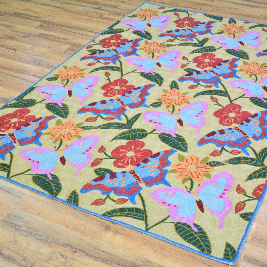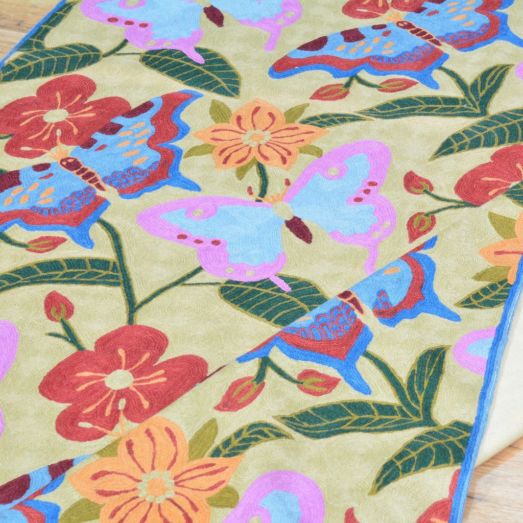 Because the chain stitch is not a weaving technique, curves and other naturally flowing designs are advantages over typical woven rugs. The experience and creative mind of an artisan are the few limitations to the beauty and intrigue of a chain-stitched rug.