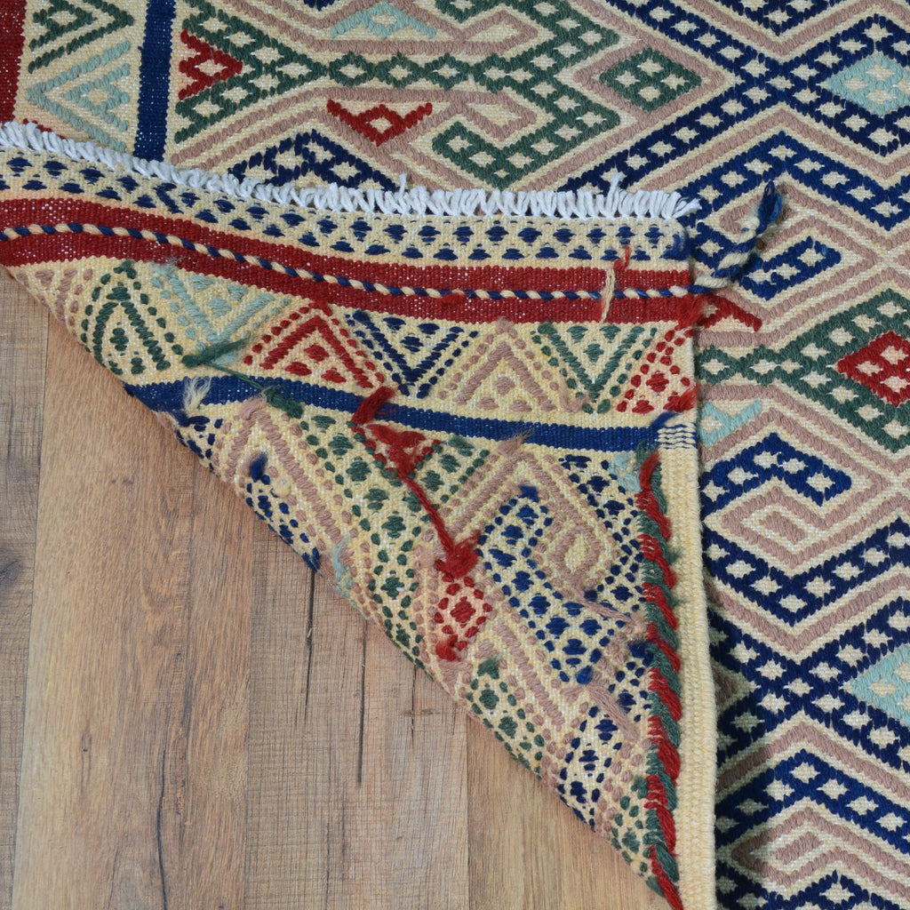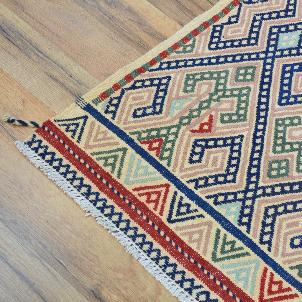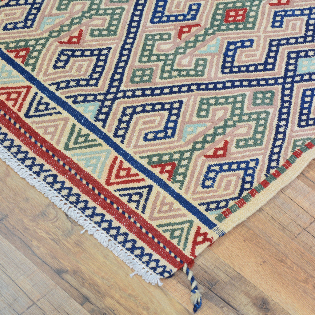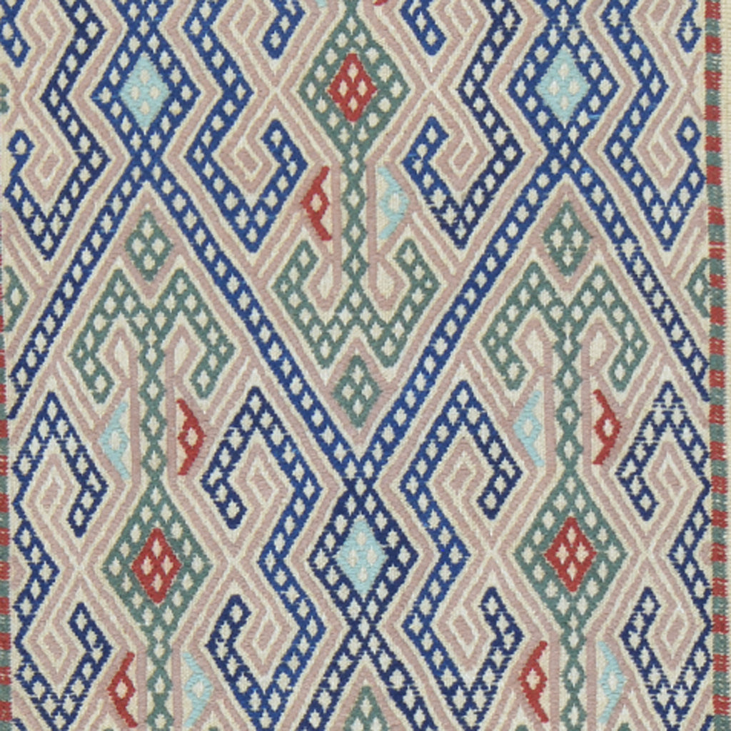 To avoid long vertical slits that can make a Hand-Woven rug not durable, most Kilim rugs are created with diagonal or horizontal patterns. This is why it's very common to see octagons, diamonds and triangular shapes in a Flatweave rug.
