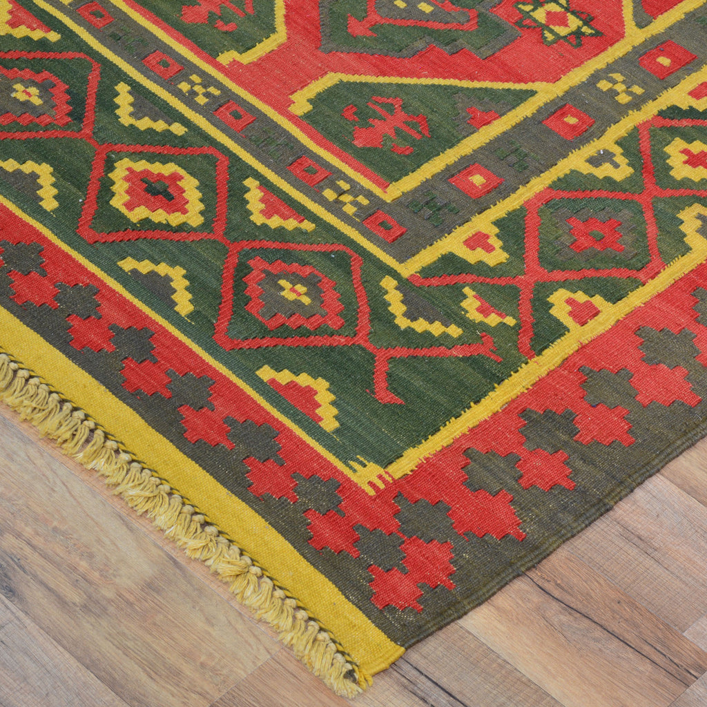 To avoid long vertical slits that can make a Hand-Woven rug not durable, most Kilim rugs are created with diagonal or horizontal patterns. This is why it's very common to see octagons, diamonds and triangular shapes in a Flatweave rug.