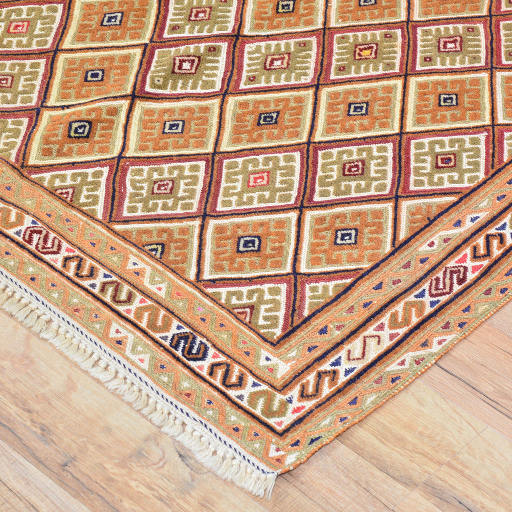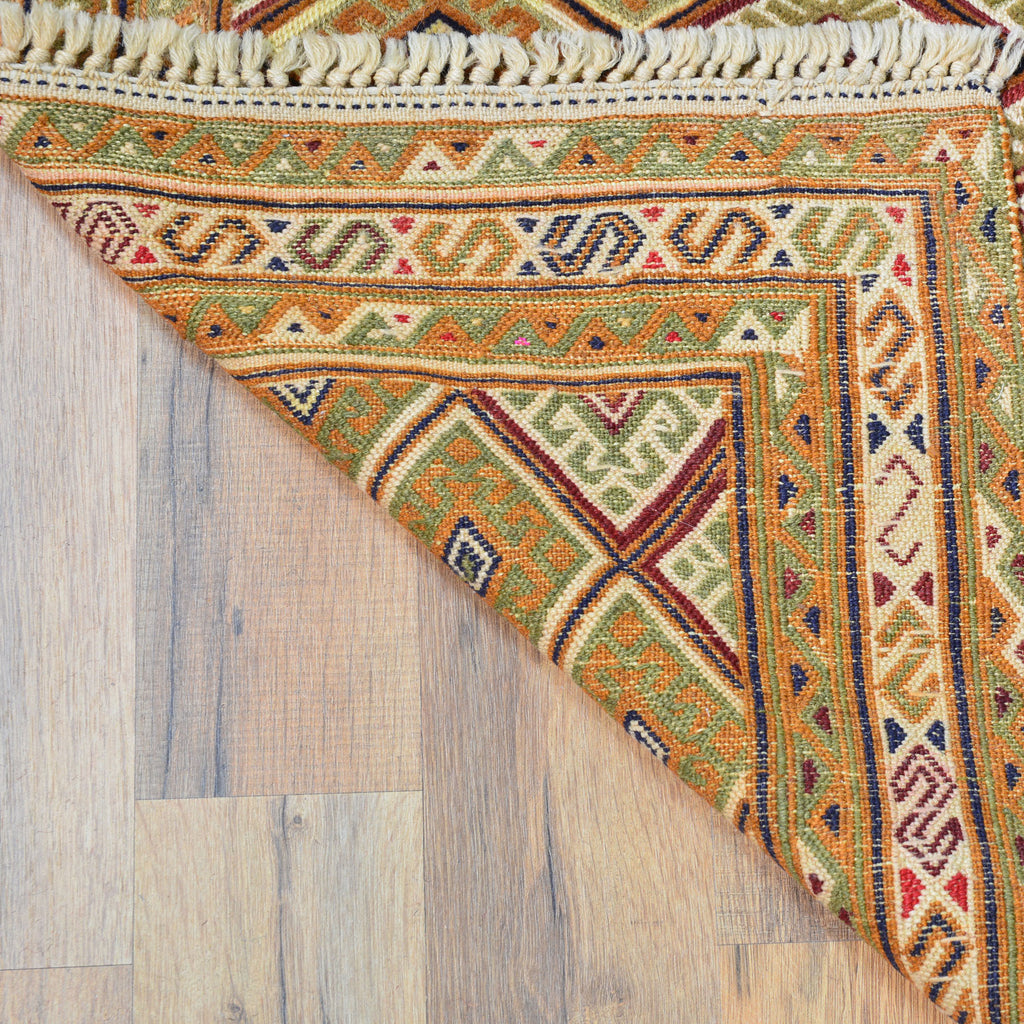 To avoid long vertical slits that can make a Hand-Woven rug not durable, most Kilim rugs are created with diagonal or horizontal patterns. This is why it's very common to see octagons, diamonds and triangular shapes in a Flatweave rug.